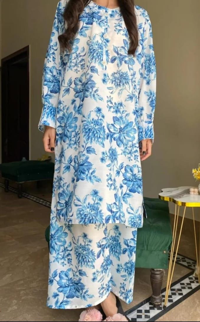 Front Neck And Sleeves Hand Pearls Work Shirt Digital Printed 2-Piece Cord Set