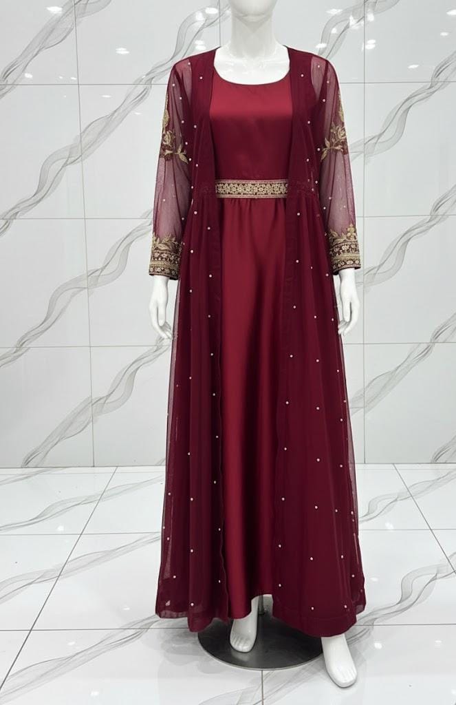Front And Back Pearls Attached With Emb Gown