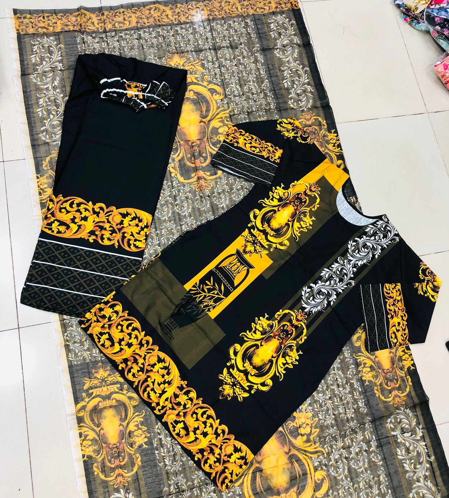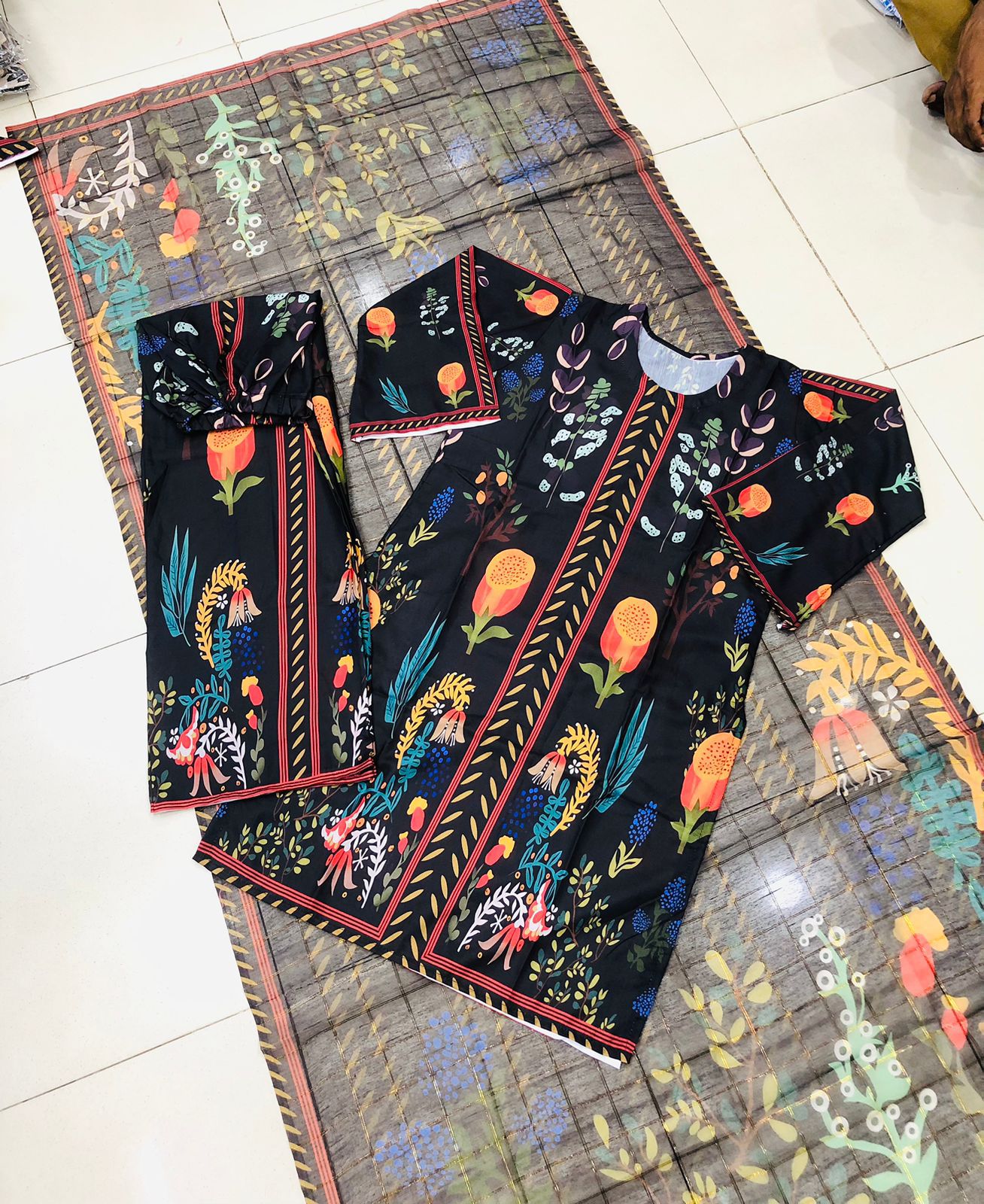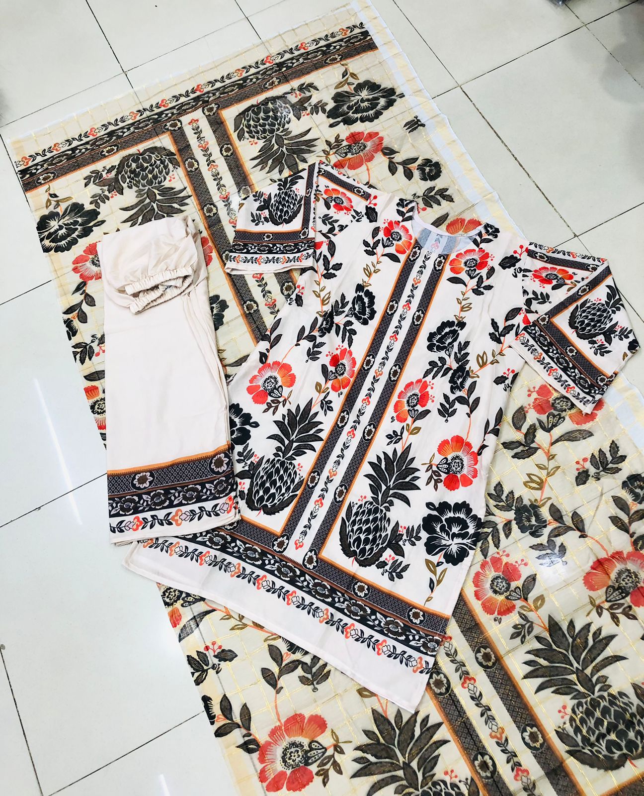 Beautiful🌹 Digital🎨 Print Shirt👚 & Dupatta Digital Print Bell Bottom👖