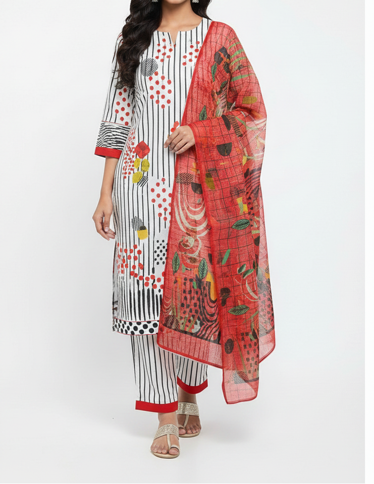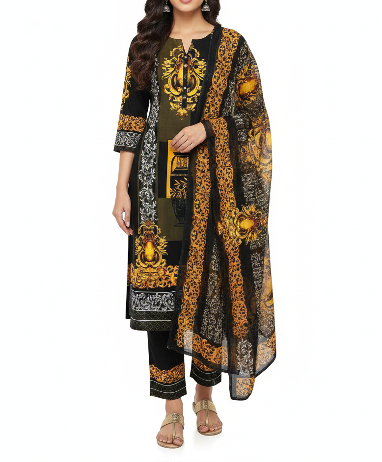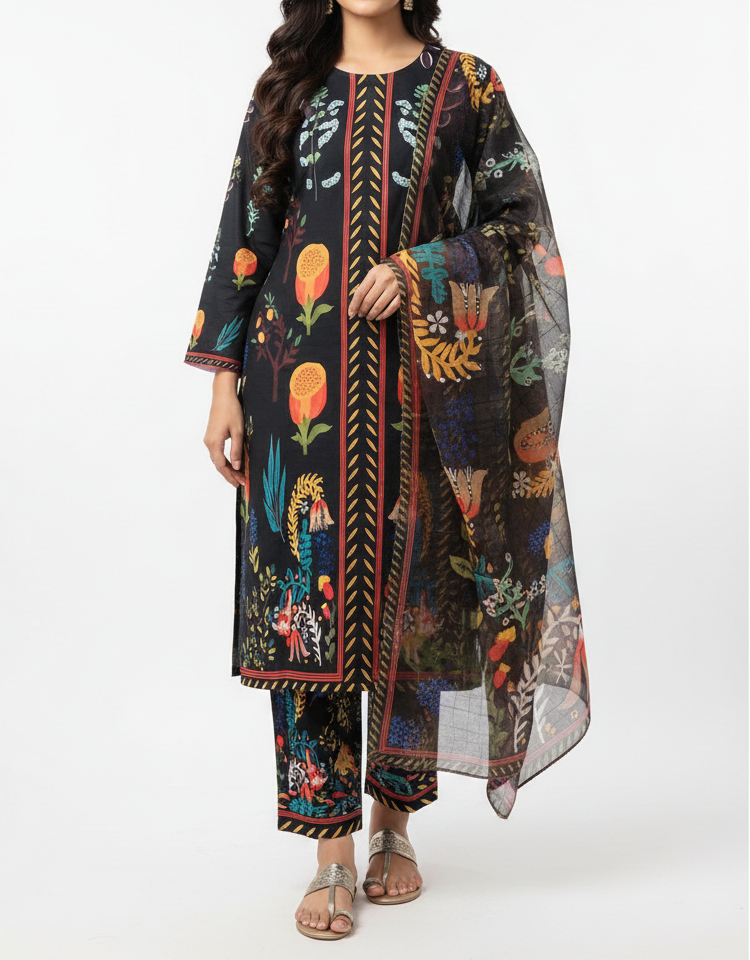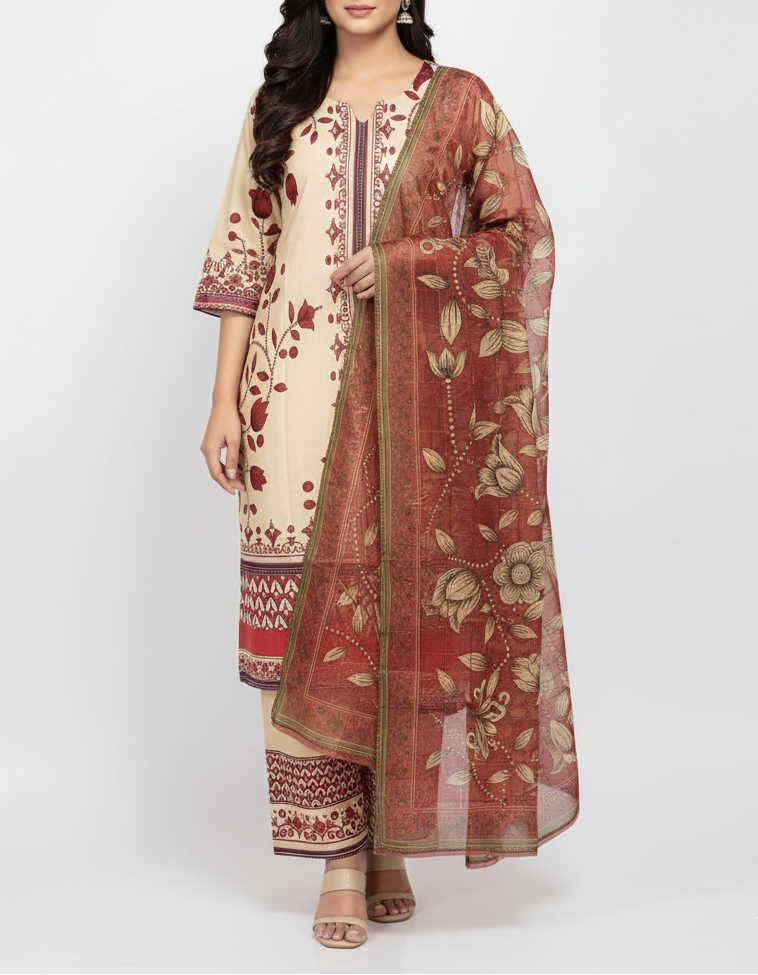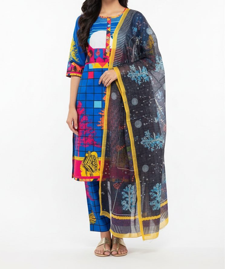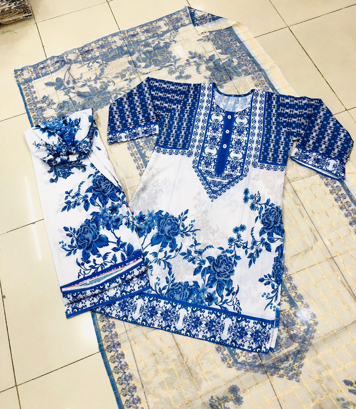 Beautiful🌹 Digital🎨 Print Shirt👚 & Dupatta Digital Print Bell Bottom👖