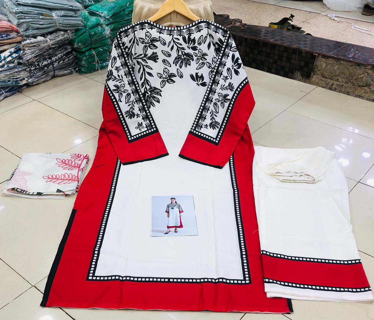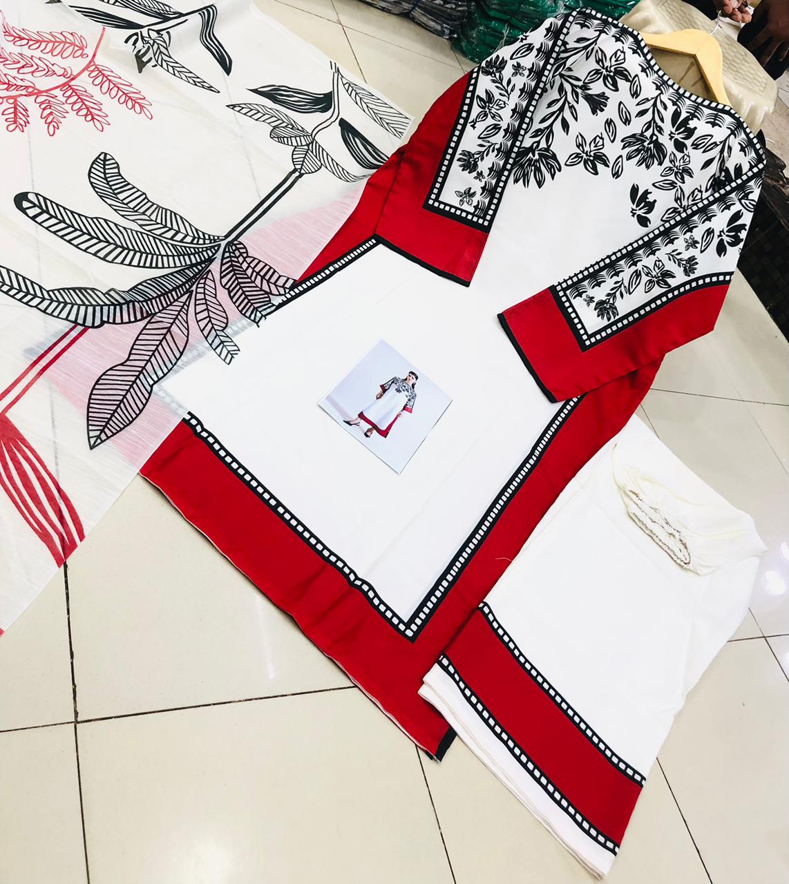 52 Long Shirt Length 22 Chest Size 38 Bell bottom Trouser Length 2.5 Yardz DupattaFabric Shirt & Trouser Swiss LawnFabric Dupatta Munar