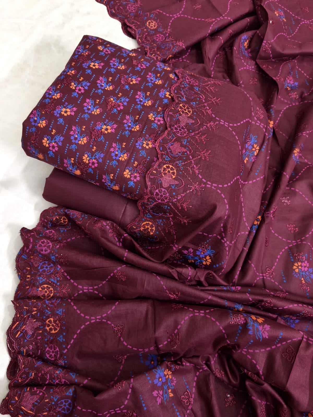 - Heavy Embroidered Chicken Buti With Two Side Cutwork Printed Lawn Dupatta