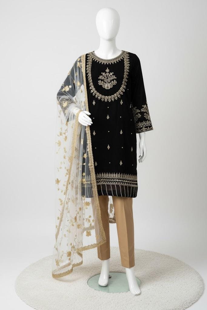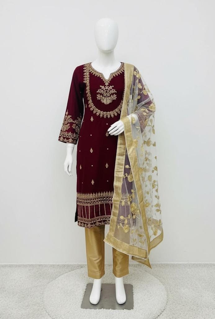 Handwork And Embroidery Shirt With Emb Dupatta 3-piece