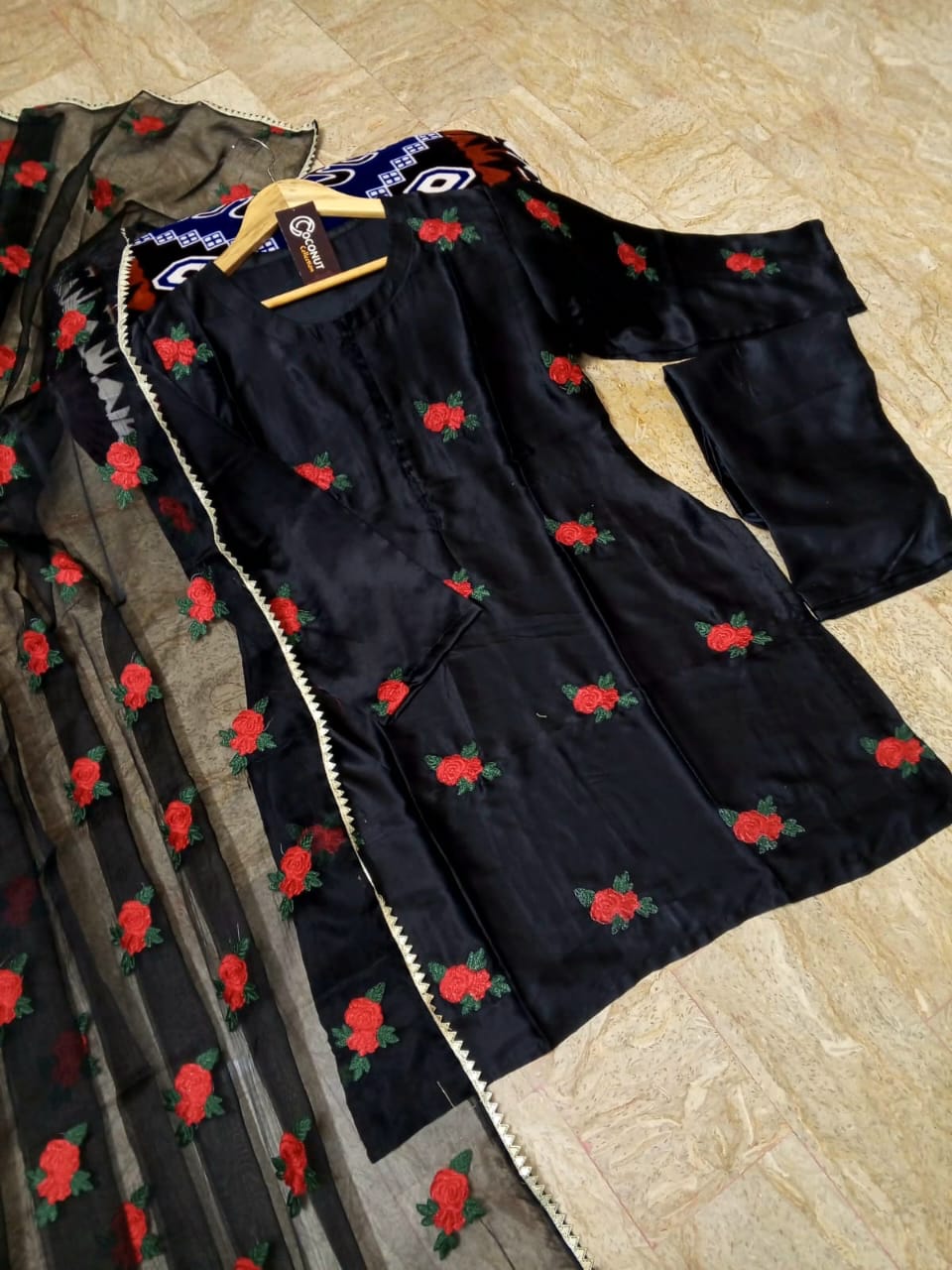 Rose Embroidery Shirt and Trouser with Embroidered Dupatta 3PCs