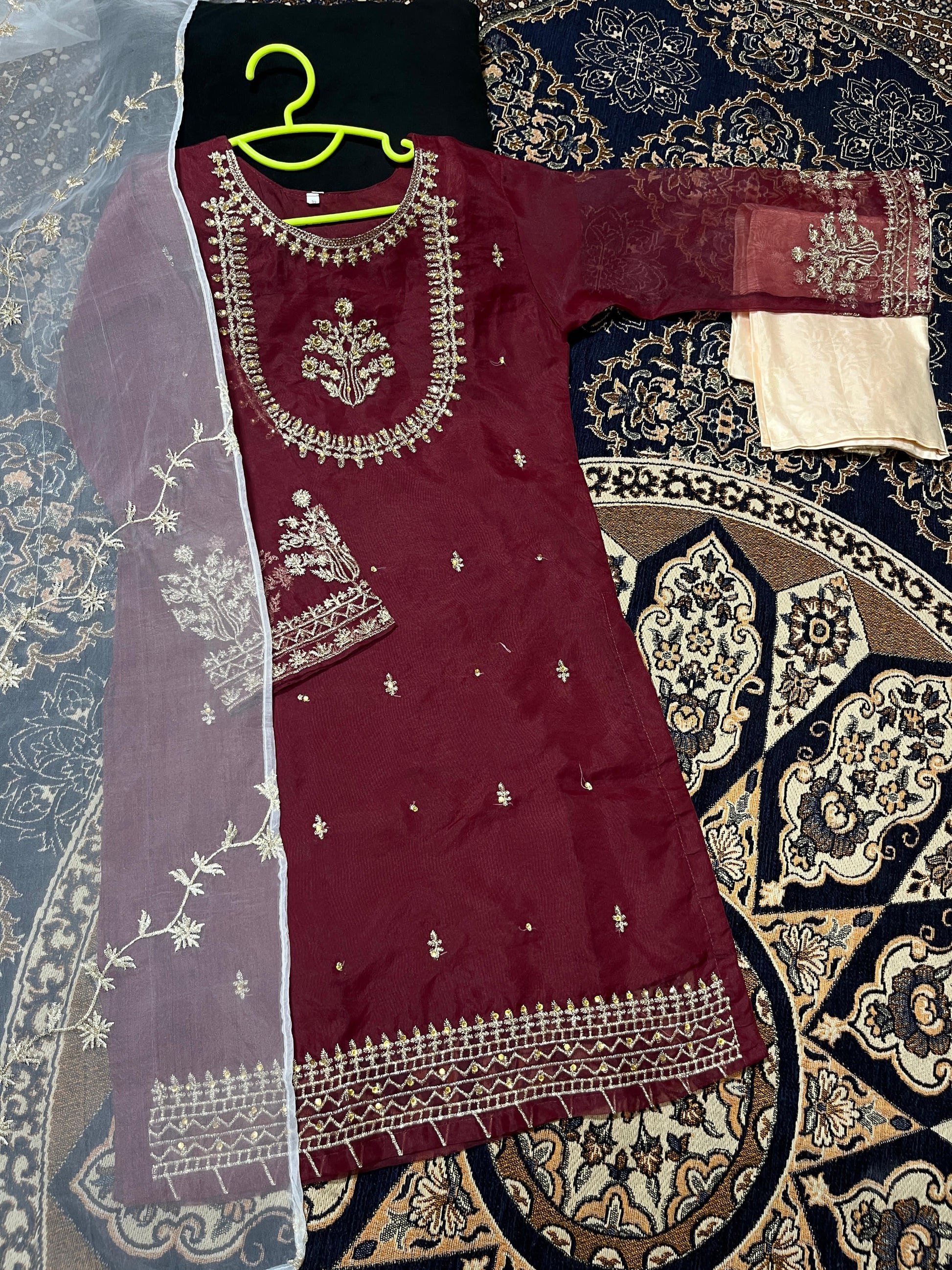 Handwork And Embroidery Shirt With Embroidered Dupatta And Maysoori Trouser Kids 3piece