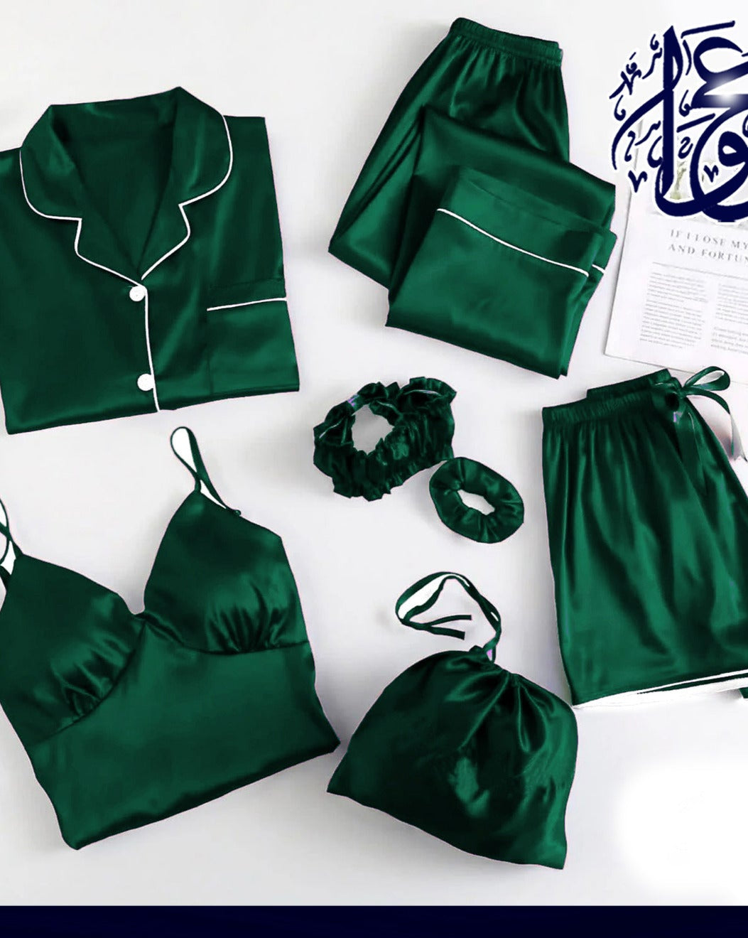 Piping Work On Shirt Trouser Short With Seven Pieces Nightwear Set