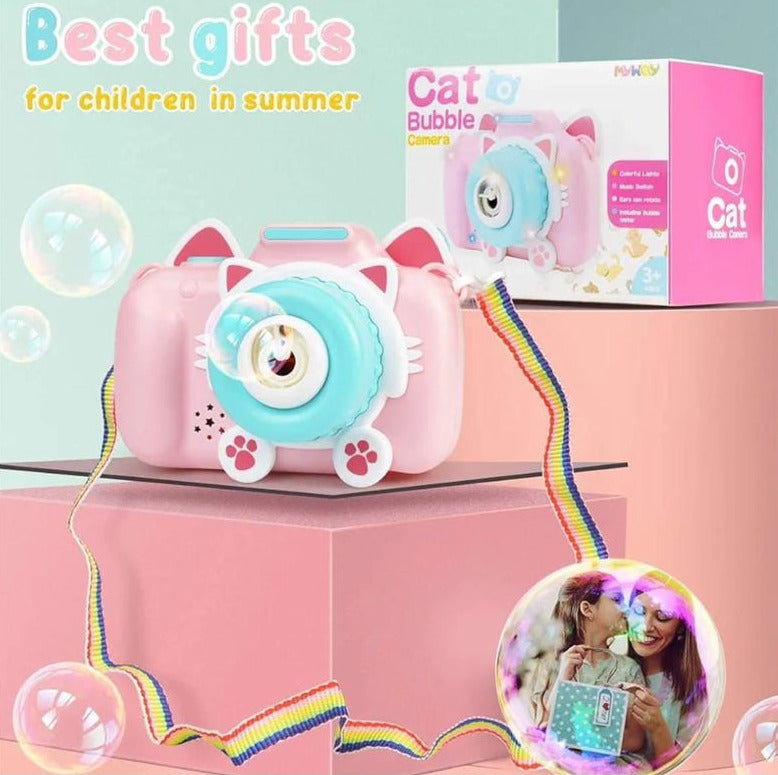 Cartoon Camera Automatic Bubble Blowing Machine Toy With Light Sound for Kids