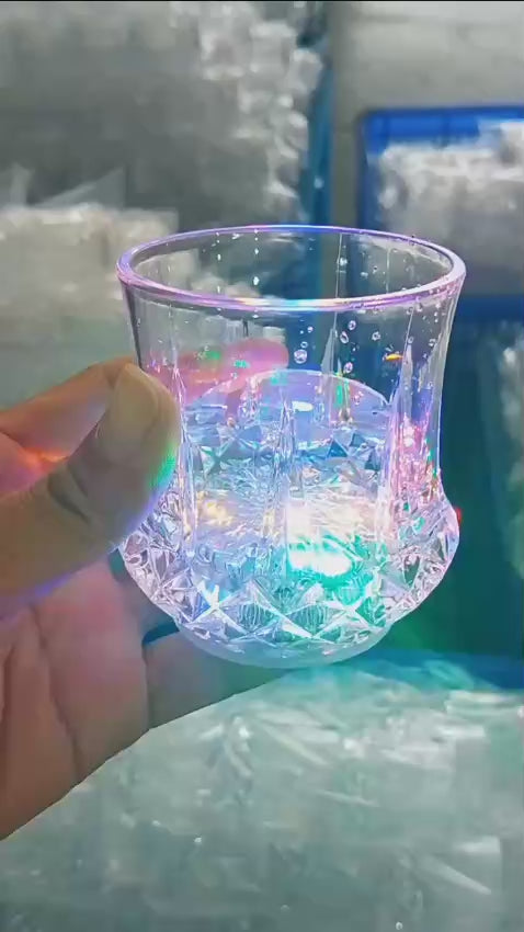 Automatic Water Flashing Shots Light Drinking Glowing Glasses Glitter cups make it the perfect gift for New Years, holiday parties, birthdays, wedding Automatic on and off: Just add liquid to activate the flashing multi-colored LEDs in the base of the cup. The lights turn off when the cups are empty LED light would be activated when you pour liquid into the tumbler Long-lasting coin batteries are included and installed in the bottom of the cup. The battery compartment is sealed with a twist on liquid-resistant cap Flash Light
