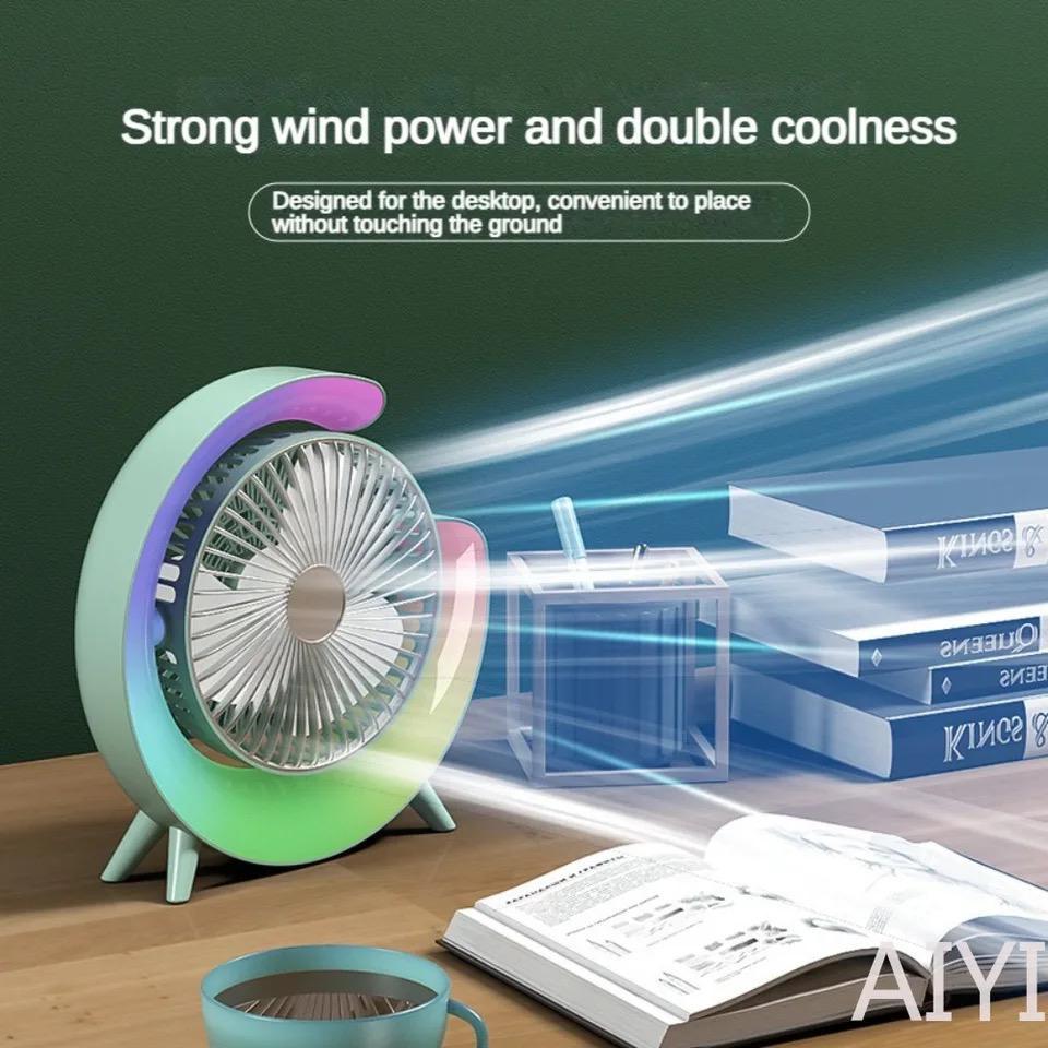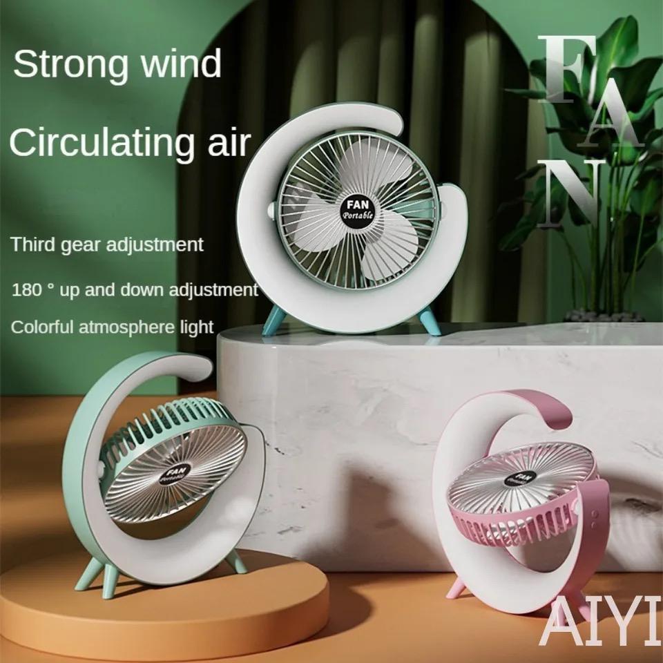 7 Colors LED Atmosphere Light Mini Electric fan Portable Table Fan Quiet USB Rechargeable Fan 3 Speeds 180°Adjustable Fan