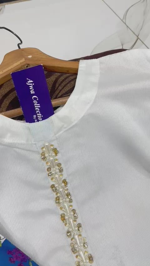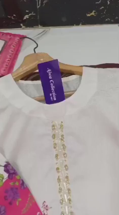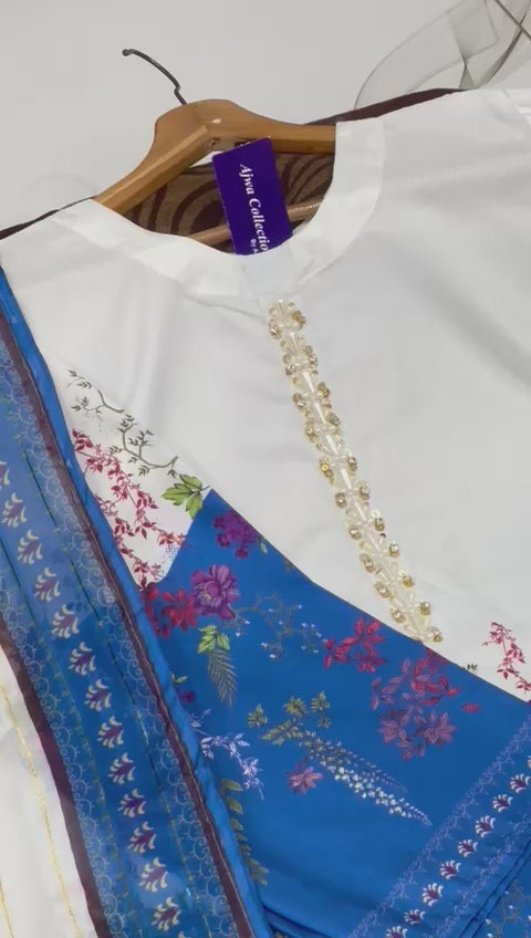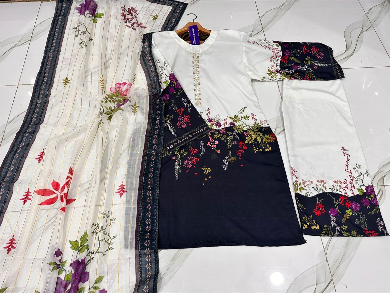 Front And Back Allover Digital Printed With Adda Handwork On Shirt With Flapper And Printed Dupatta Cord Set 3Pcs