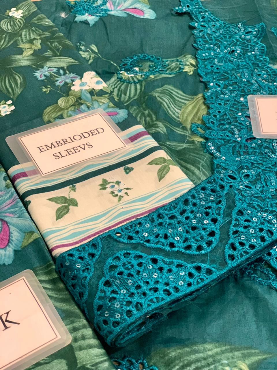 Printed lawn sleeves with heavy embroidered sleeves border