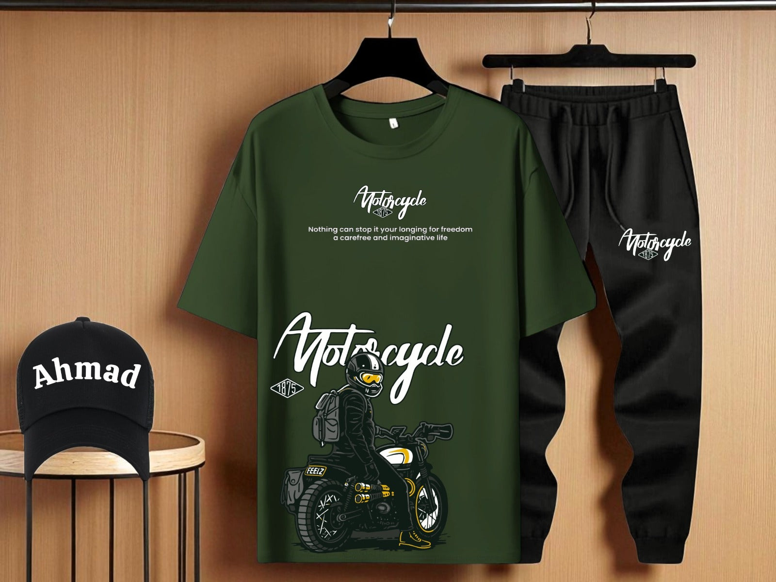 Biker Printed Tracksuit with Customized Cap 🖤💫