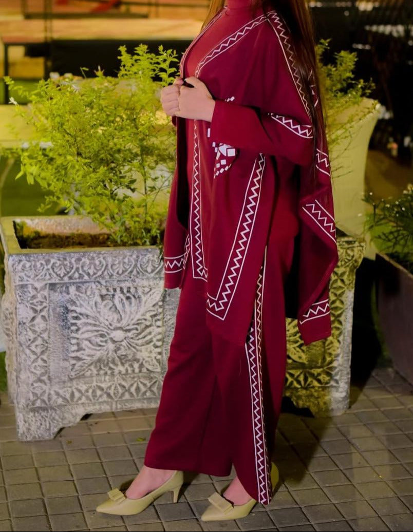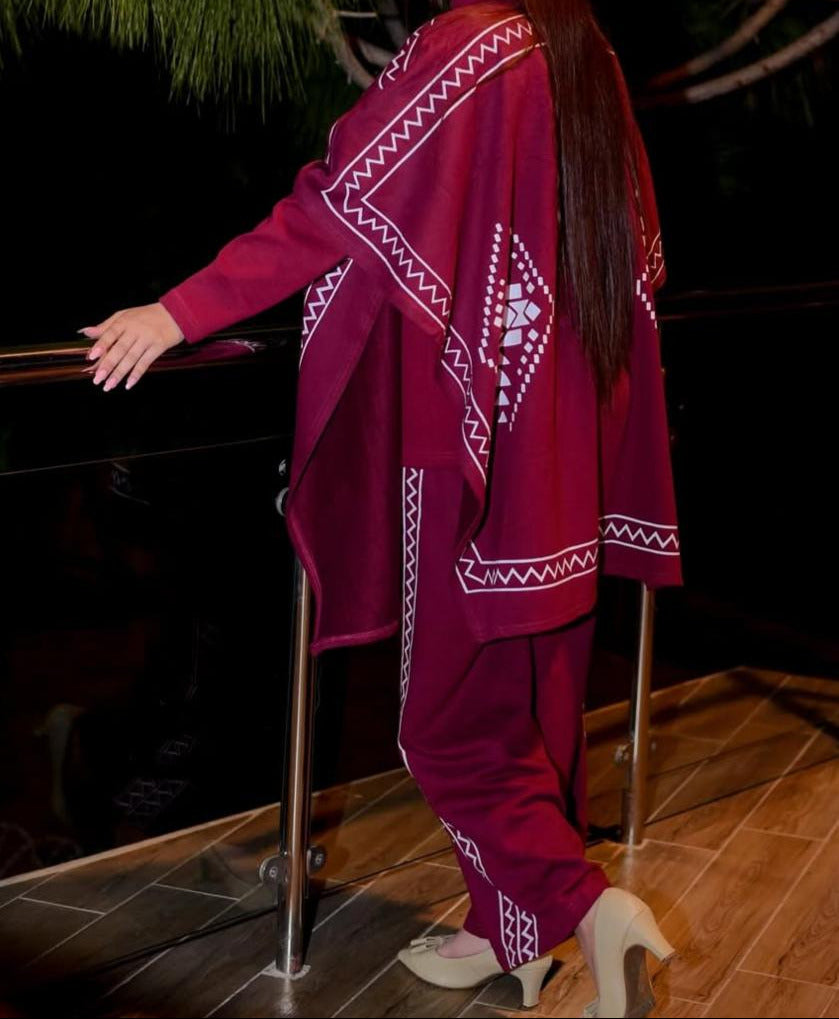 Front And Back Printed Upper Shawls With Premium Rib Plain High Neck And Flapper 3Pcs