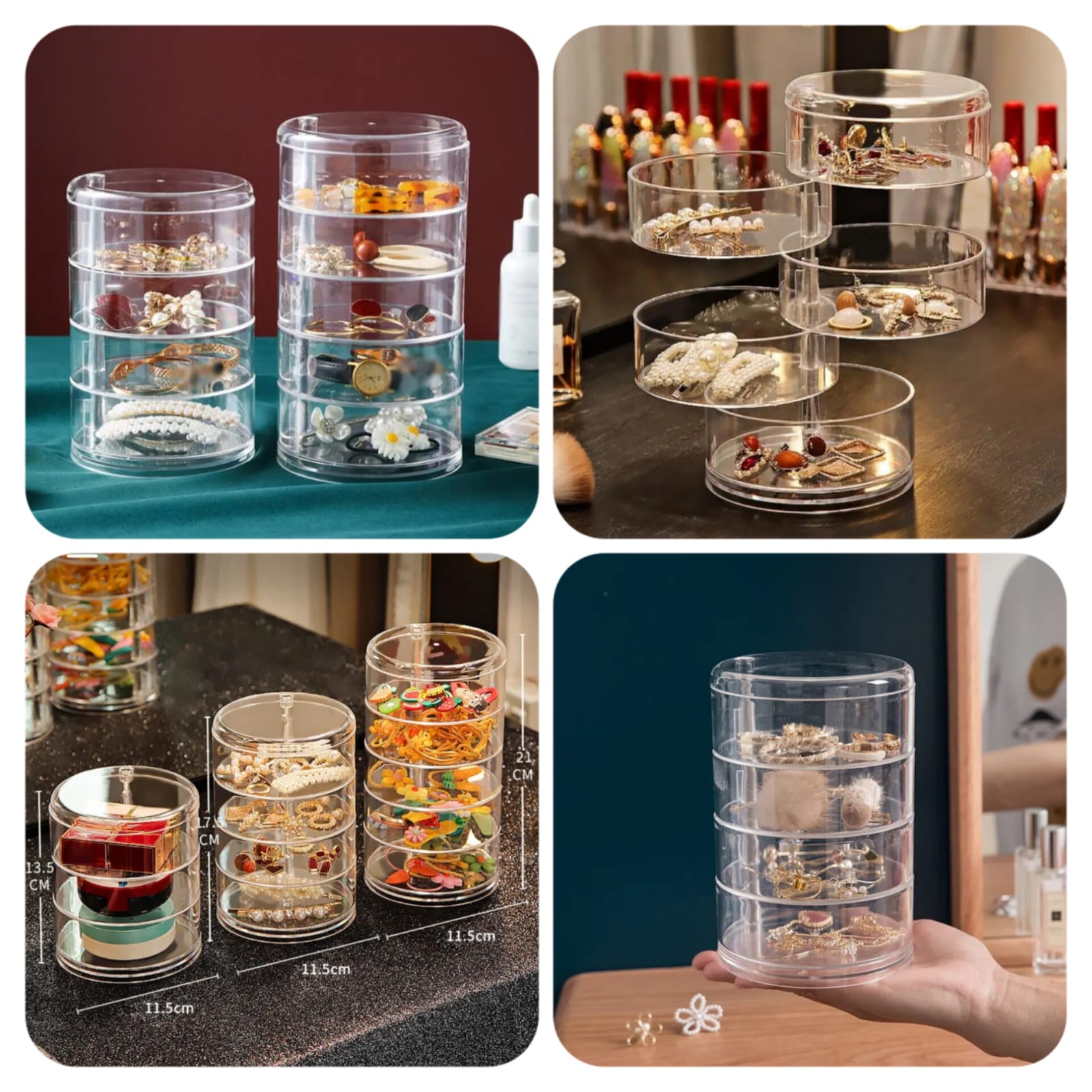 - 【Layered Storage】—Multi layers jewelry holder, which can be arbitrarily rotated according to your needs, can effectively store more items neatly and orderly such as earrings, rings, necklaces ,bracelets accessories, headband or other small supplies. Very handy and takes up little space.