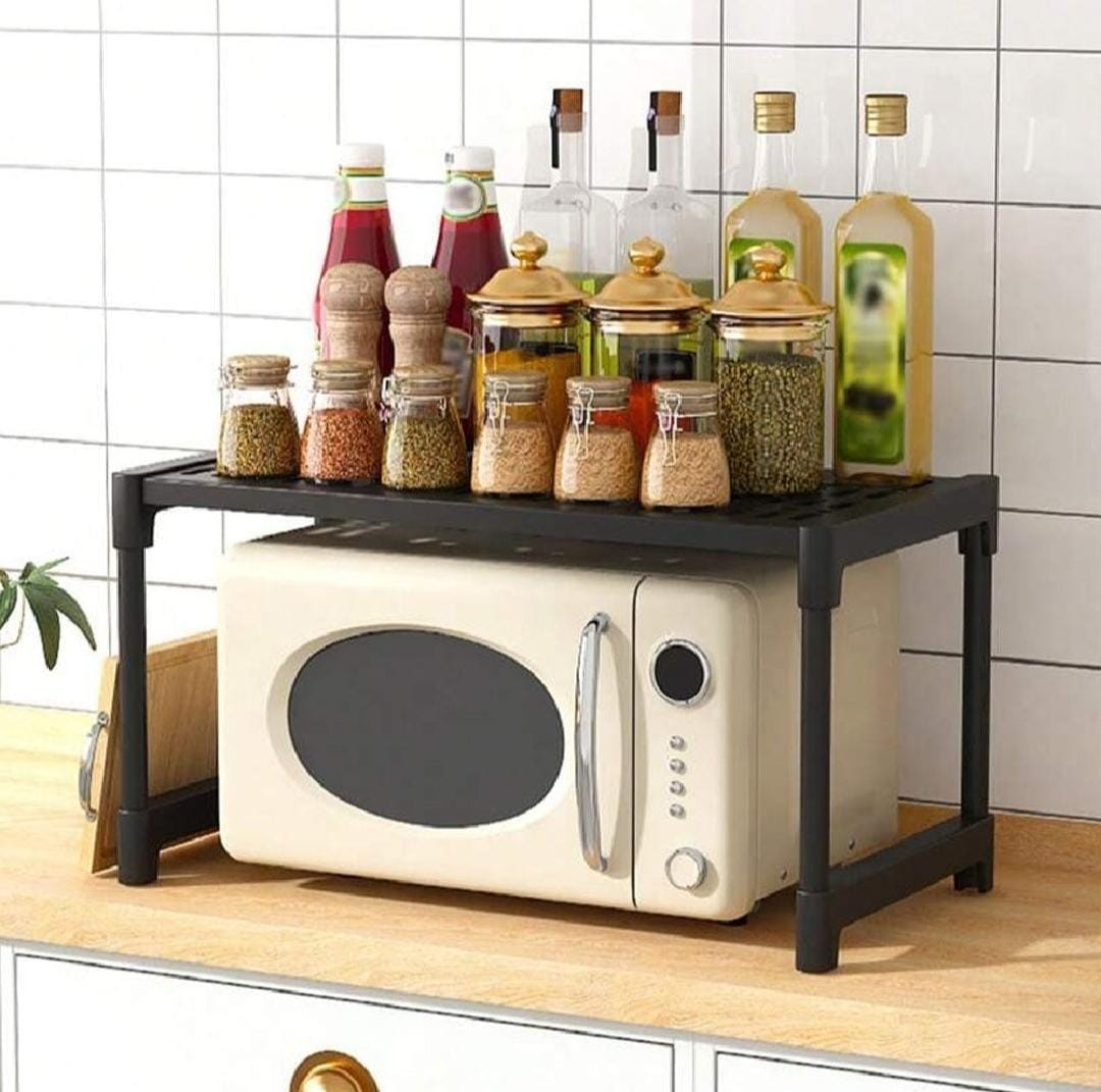 High quality of metal frame better stabilize the shelf, support heavy weight kitchen accessories.