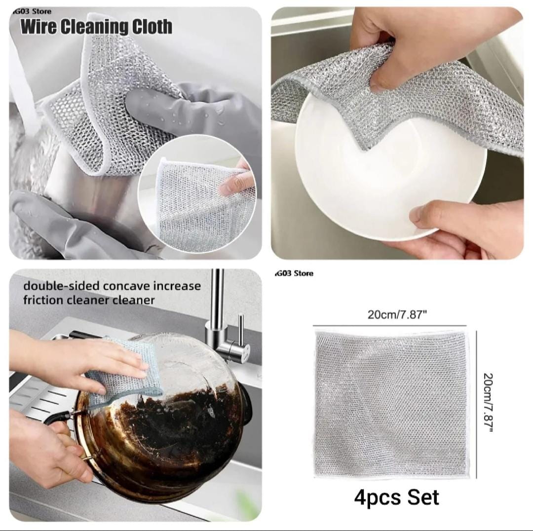 Pack of 4 Kitchen Steel Mesh Wire DisWasher Cleaning Cloth Piece